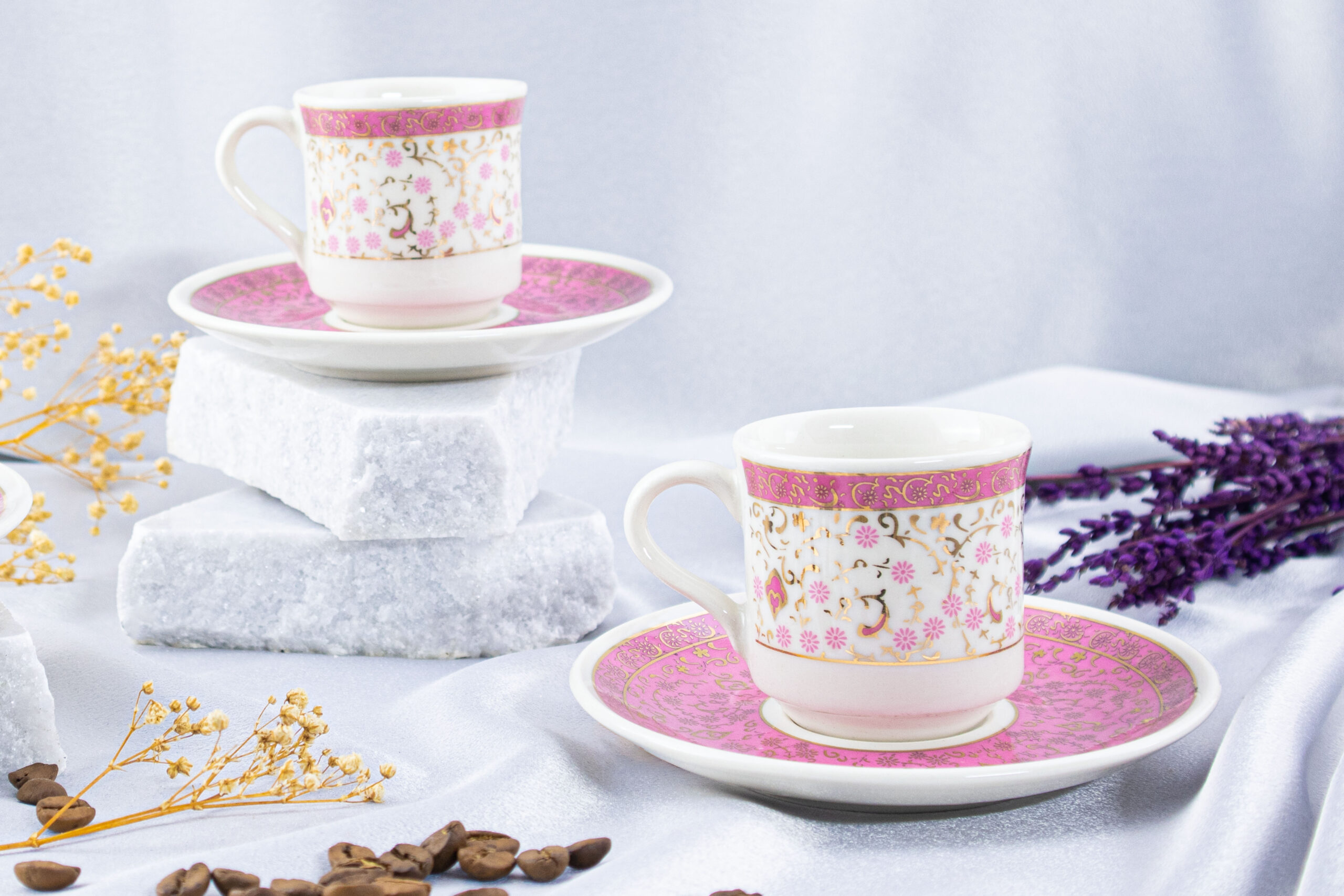 Her fincanımız, özenle seçilen desen ve renklerle zarif bir şıklığa sahiptir.