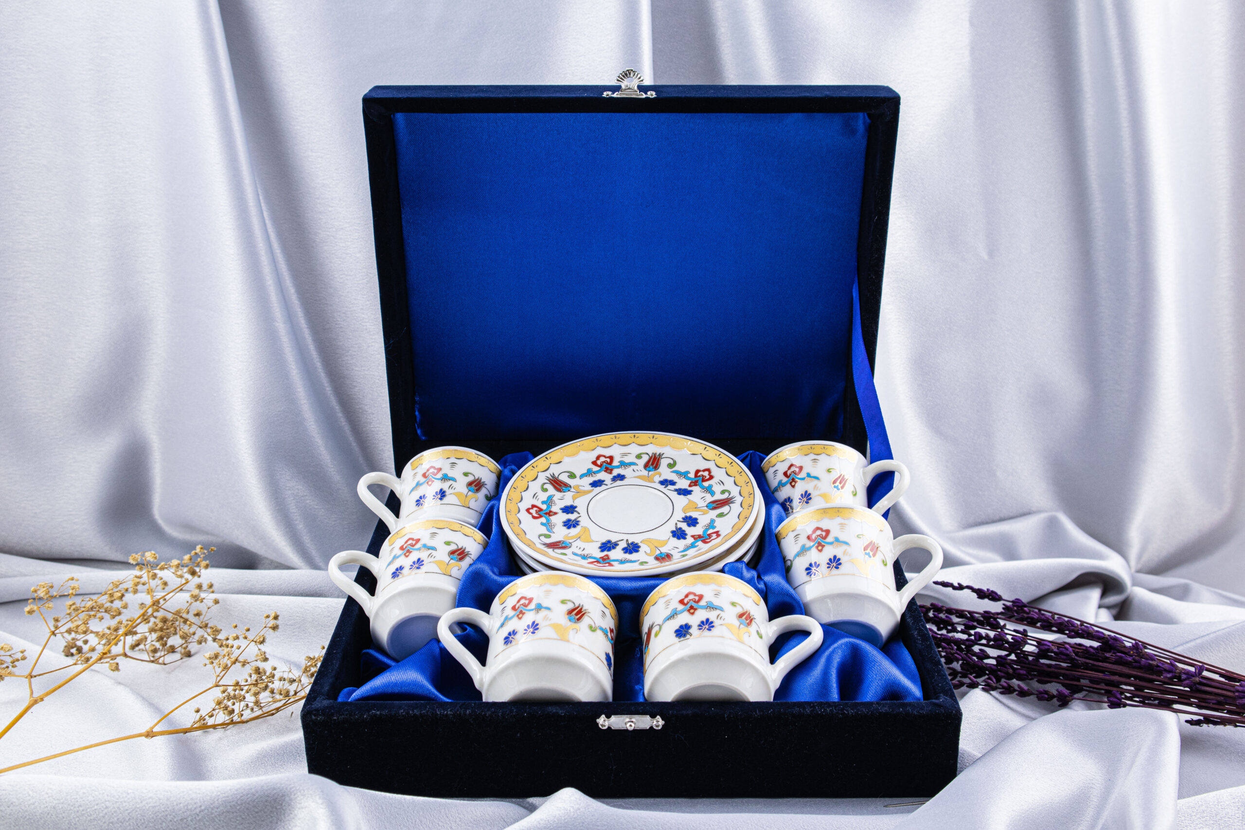 İnce işçilik ve gerçek altın yaldızlı kaliteli malzeme, fincanlarımızı uzun yıllar kullanabileceğiniz şekilde tasarlanmıştır.